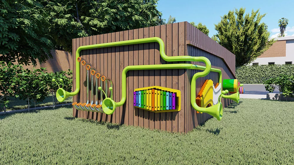 Trealamh Súgartha Páirc Ceoil na bPáistí Is trealamh páirce siamsaíochta é Wall Mount Musical Instrument a ligeann do dhaoine labhairt ó thaobh amháin agus éisteacht ón taobh eile. Is píopa cruach ghalbhánuithe casta é an feadán cainte seo le dhá choirnéal gleoite d'airde éagsúla, rud a fhágann go bhfuil sé áisiúil do leanaí d'aoiseanna difriúla a imirt le chéile. Ag an am céanna, tá am úsáide fada amuigh faoin aer ag a ábhar resistant aimsir agus tá sé éasca a shuiteáil agus a chothabháil, rud a fhágann go bhfuil sé ina ionad cúram uisce idéalach, páirc uirbeach, ionad saoire, agus áiteanna súgartha lasmuigh nó faoi dhíon leanaí eile.