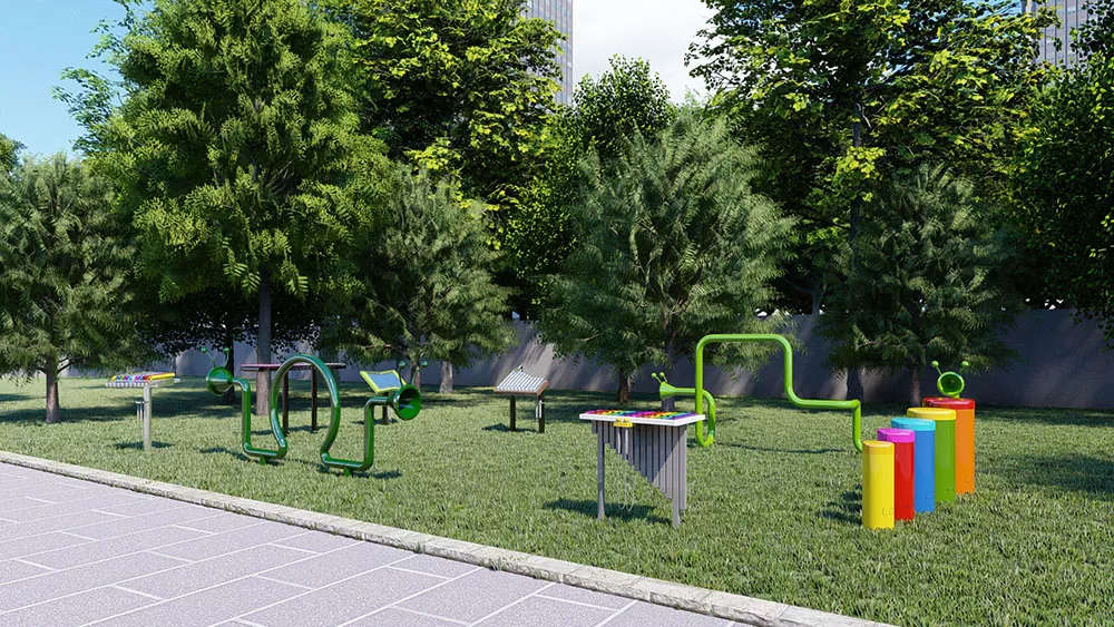 Léiríonn an dath simplí caife ar ionstraim pháirc cheoil amuigh faoin aer cuimhní ar an bhfómhar domhain agus cuireann sé le haon timpeallacht lasmuigh i rith na bliana. An -oiriúnach do pháirceanna, áiteanna súgartha, agus gairdíní, spreagann sé daoine de gach aois agus cumas chun ceol a fhiosrú. D'fhonn ensemble comhchuí a bhaint amach, soláthraíonn an teaglaim gan uaim d'uirlisí séis agus rithim duaiseanna sábhála spáis a chuireann charm séiseach le haon timpeallacht.