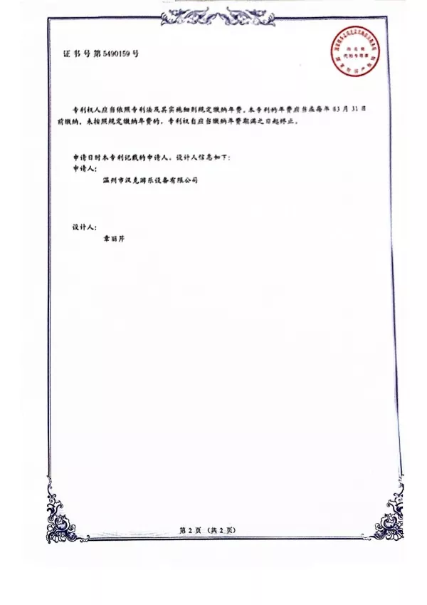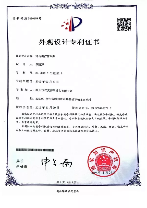 Ag an am céanna, mar tháirge dílsithe de Hank, rinneamar iarratas ar dheimhniú paitinne dearaidh le haghaidh seastán Ionstraim Cnaguirlisí Múnlaithe Zebra i 2019 agus fuair muid ceadú ó Oifig Maoine Intleachtúla na Síne.
